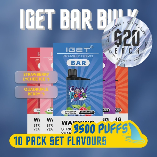 Enjoy double the sweetness with the IGET Bar 10 Pack Set Flavours, featuring 5× Strawberry Lychee Ice and 5× Quadruple Berry for the perfect fruity combo. Strawberry Lychee Ice delivers a smooth, juicy blend of sweet strawberry and exotic lychee, while Quadruple Berry packs a rich mix of berry flavours for a bold and satisfying vape. Each IGET Bar provides smooth performance and consistent flavour, making this bundle perfect for daily vapers who love reliable taste and great value. Grab this flavour set today and enjoy one of the most popular IGET Bar bundles at a great price.